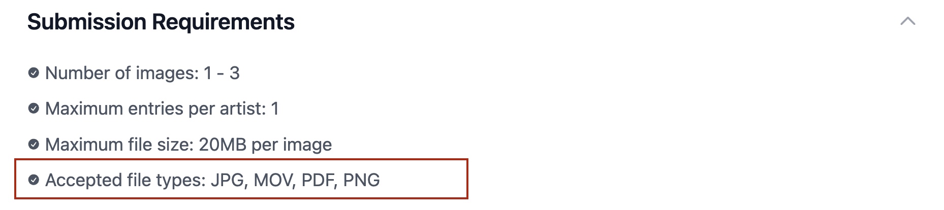 EntryThingy as a whole allows the following file types: .jpg .png .gif .mp3 .pdf .doc .mov .mp4 .wmv
