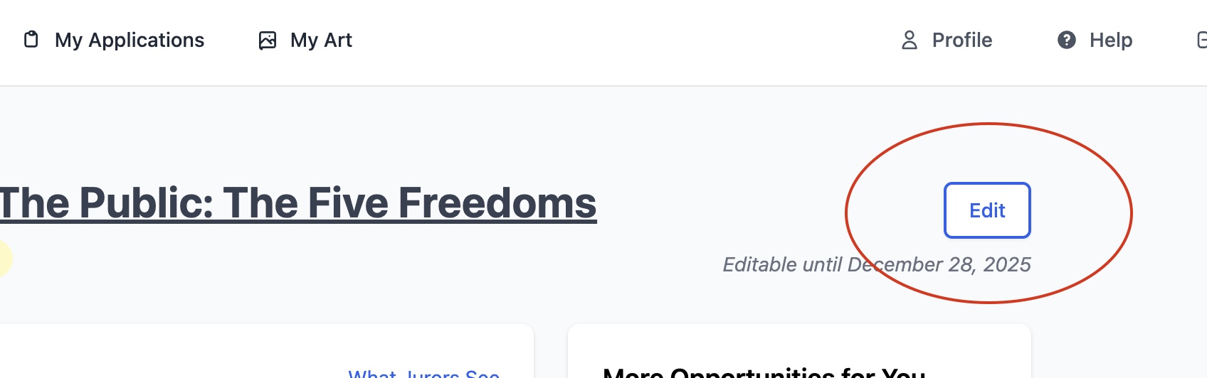 - If the deadline has not passed and the organization allows, in the top right corner of the screen will be an "Edit" button. You'll be able to make changes to your entry: